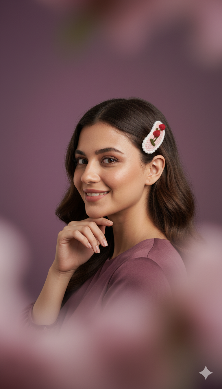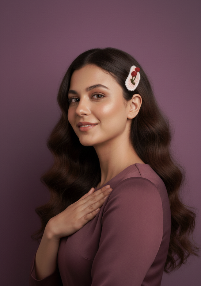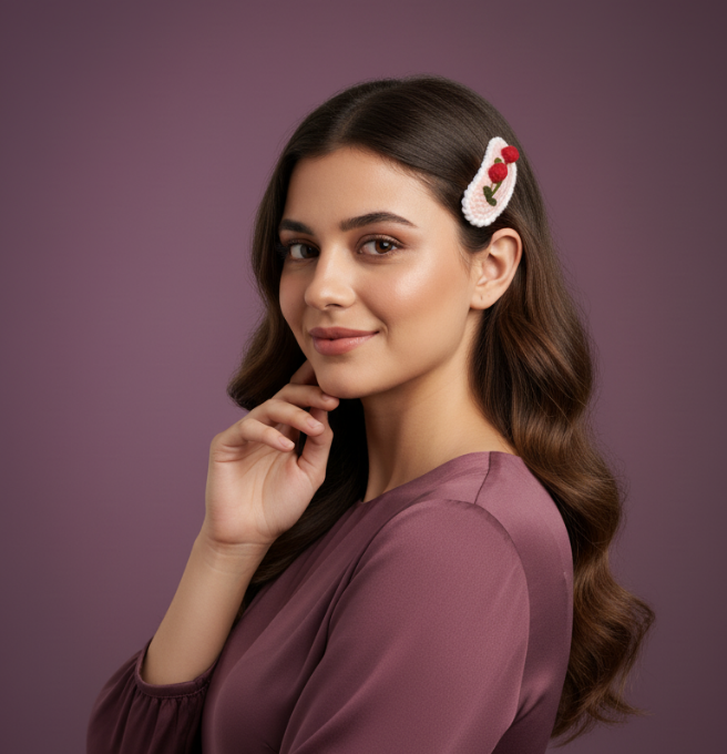 Blushberry is more than just a hair pin — it’s a whisper of elegance, a delicate bloom captured in crochet.
