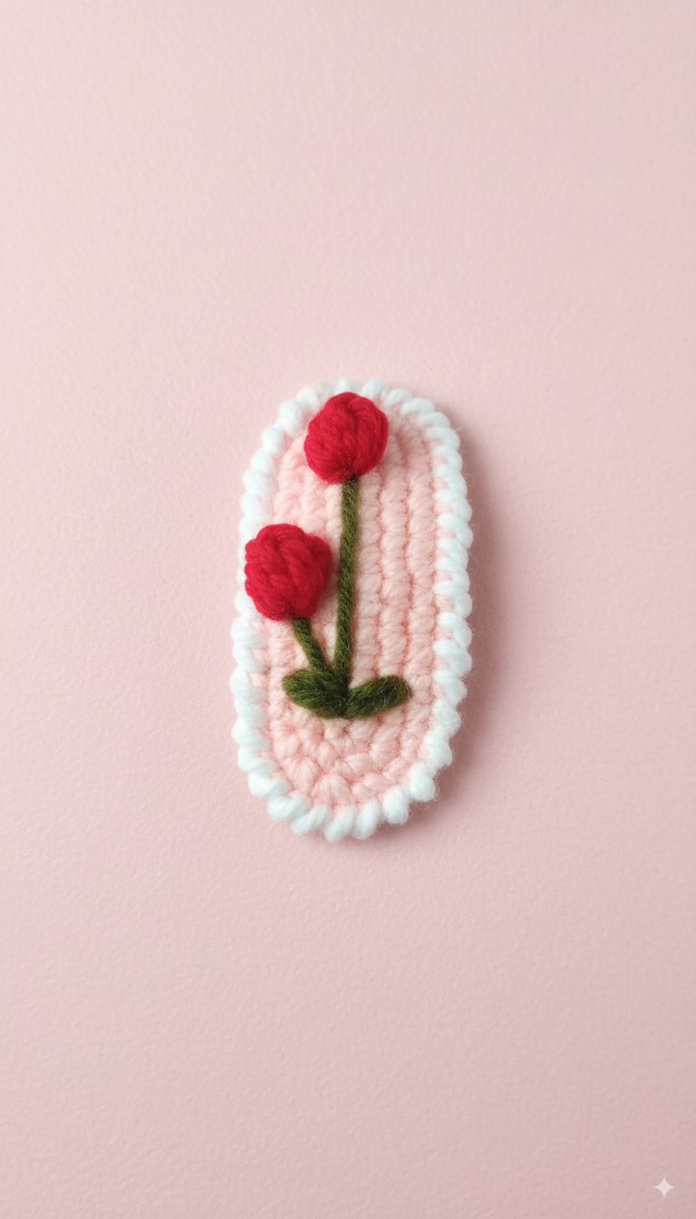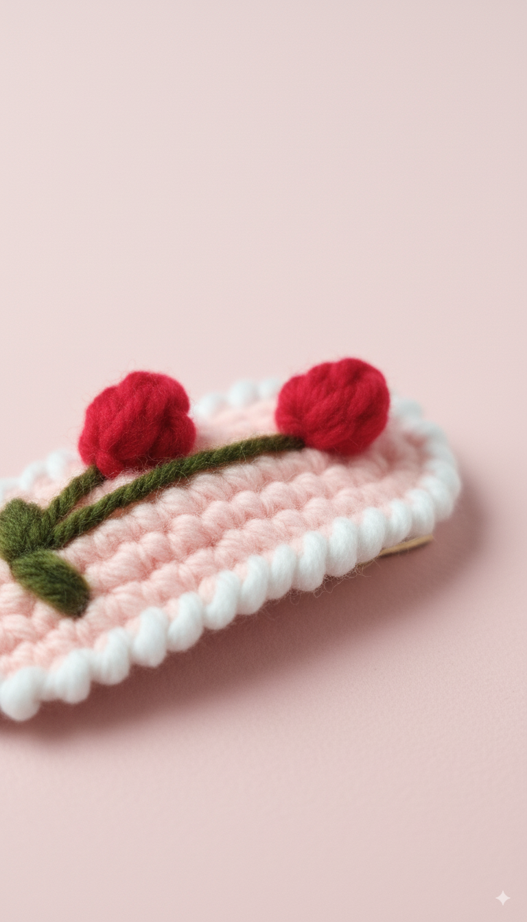Adorn your hairstyle with Blushberry, a unique, handcrafted crochet hair clip that blends the soft charm of blush tones with the delicate beauty of cherry blooms.